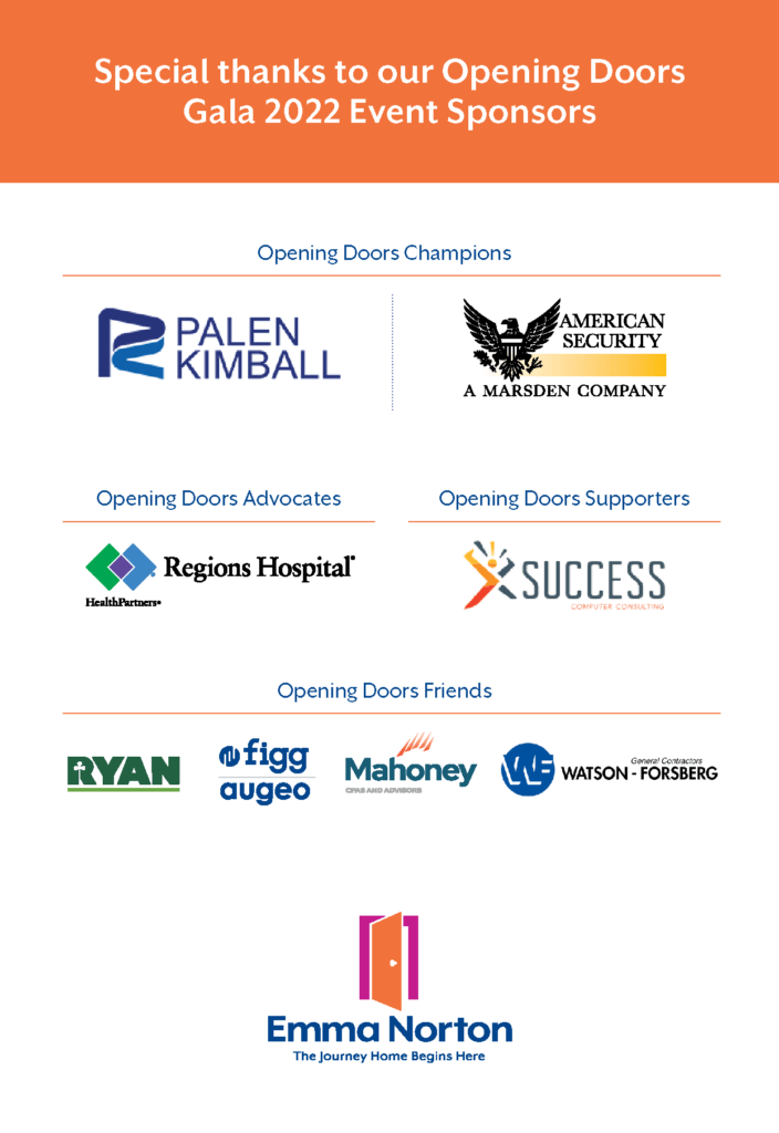 Emma Norton serves many vulnerable individuals and families with a variety of health concerns. We have a commitment to keeping our residents, staff, and supporters safe. To this end, proof of vaccination or a negative COVID-19 test taken within 72 hours of the event will be required for all individuals attending the Opening Doors Gala in person. Proof of vaccination/negative test can be shown via physical vaccination card, photo of the card, or through any third-party app where your card may be uploaded. Please have your proof of vaccination or negative test results ready for our volunteers when you arrive.